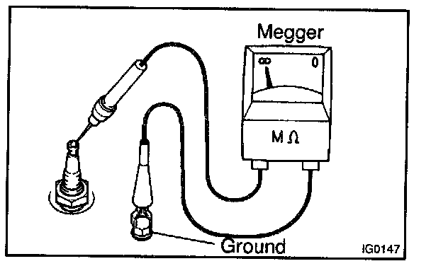 Using a megger (insulation resistance meter), measure the insulation resistance.