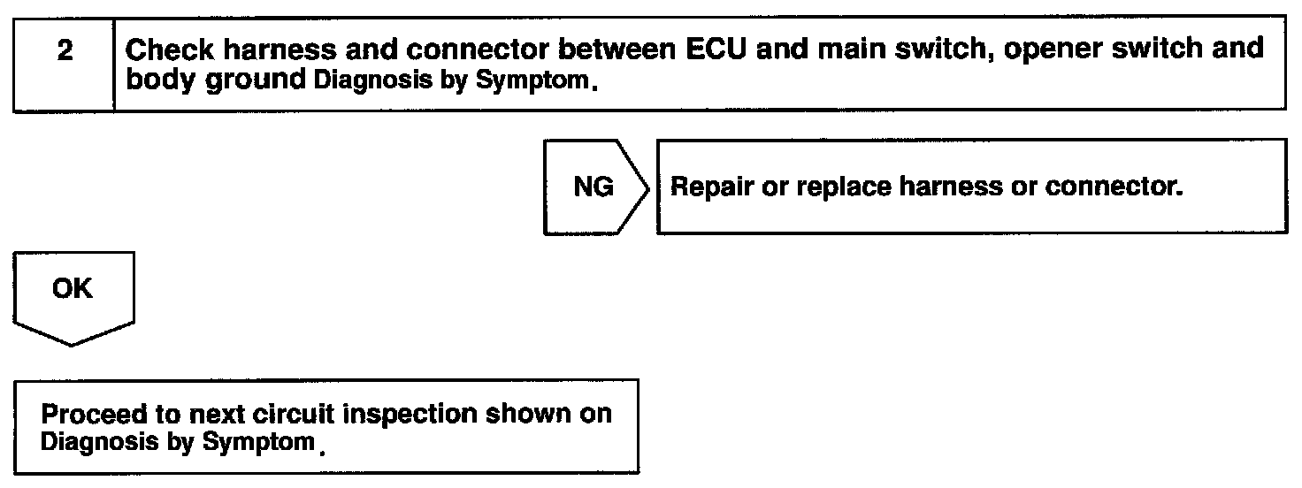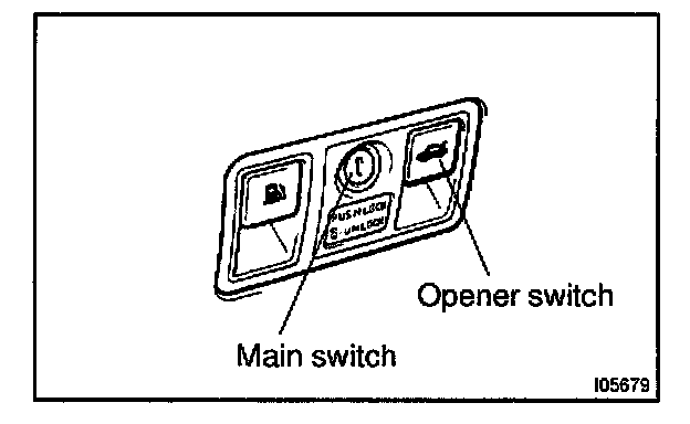The ECU energizes the luggage compartment door opener motor only when the main switch and opener switch are on together.