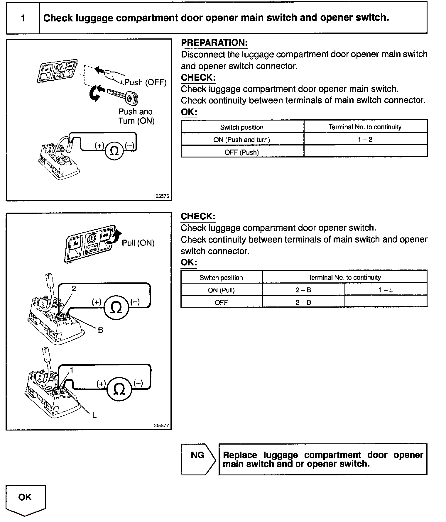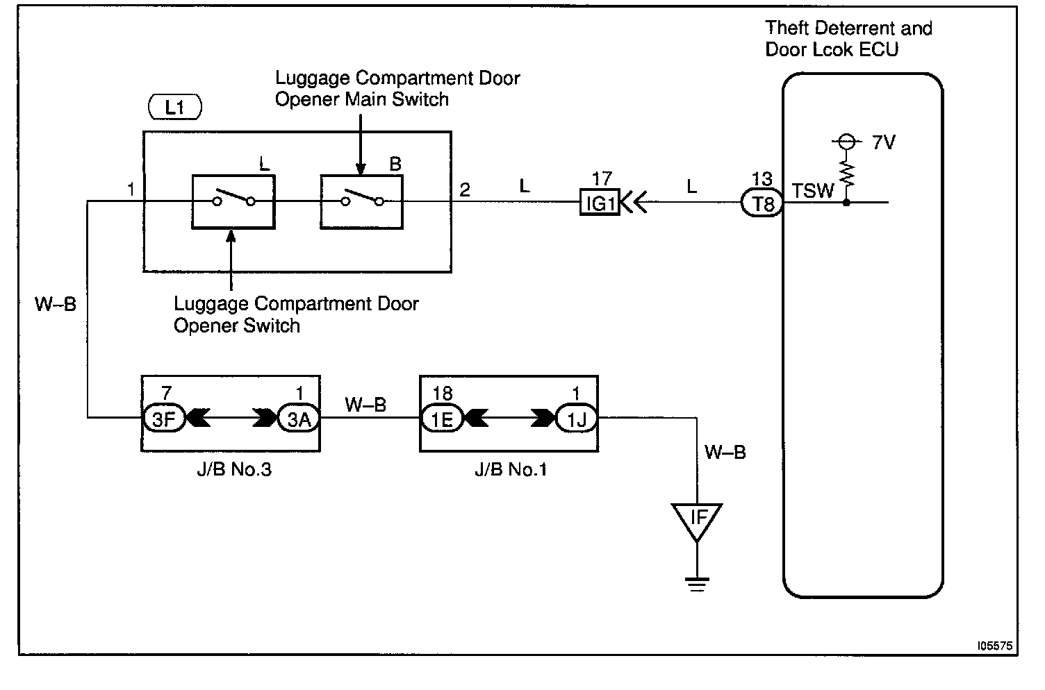 Luggage Compartment Door Opener Main Switch and Opener Switch Circuit