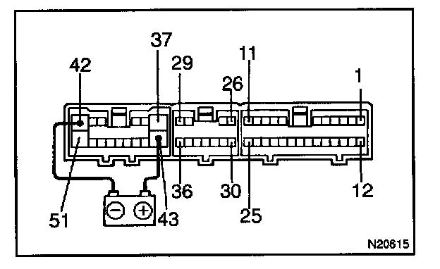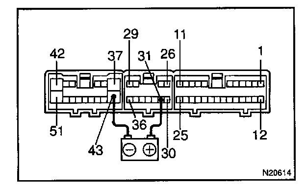Connect the positive (+) lead from the battery to terminal 31 and negative (-) lead to terminal 43, then check that the illumination lights up.