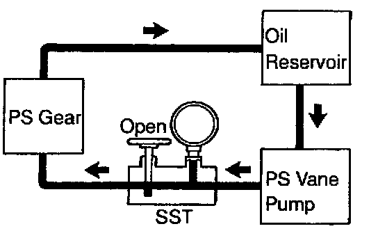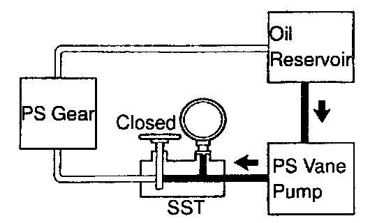 g. With the engine idling, close the valve of the SST and observe the reading on the SST.