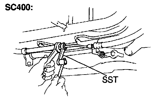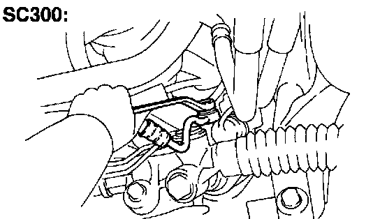 b. SC300: Remove the union bolt and disconnect the pressure tube from the PS gear.