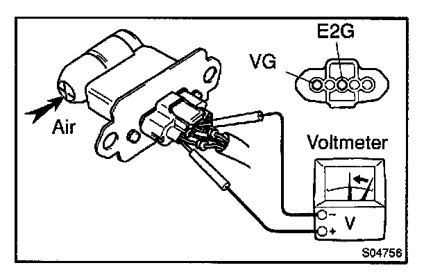 c. Using a voltmeter, connect the positive (+) tester probe to terminal VG, and negative (-) tester probe to terminal E2G.