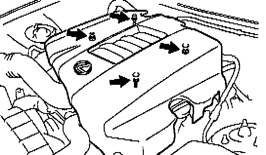 Remove the 2 cap nuts, 2 bolts and V-bank cover.