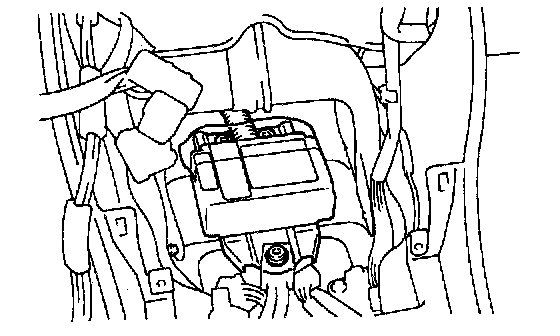 NOTE: Disconnect the connector with the airbag sensor assembly still installed to the body.