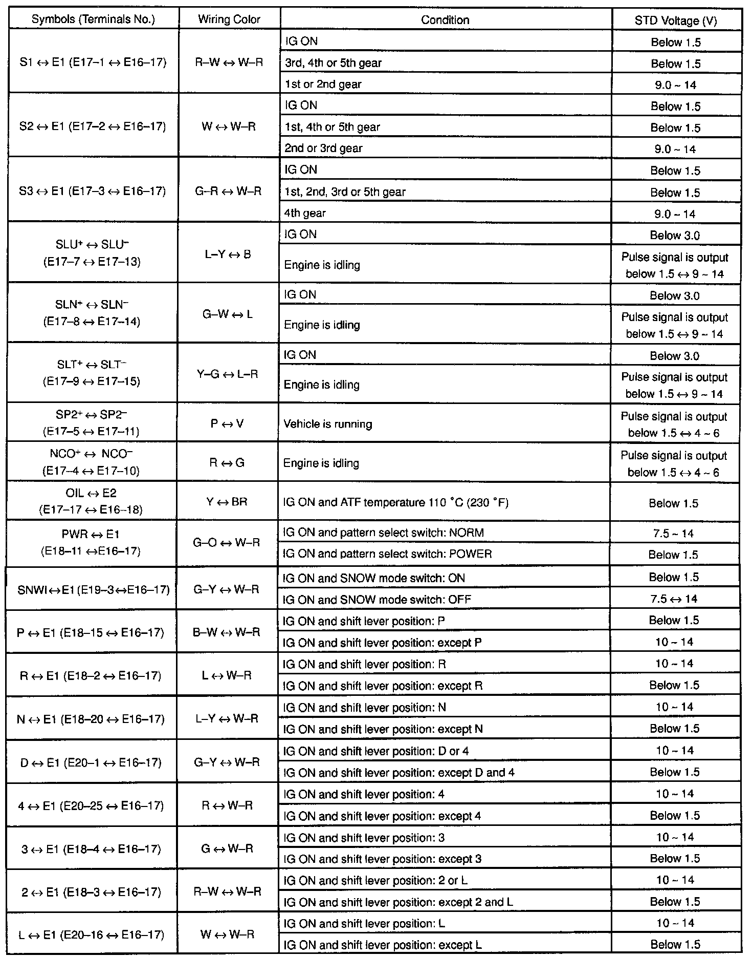 Pinout Values and Diagnostic Parameters