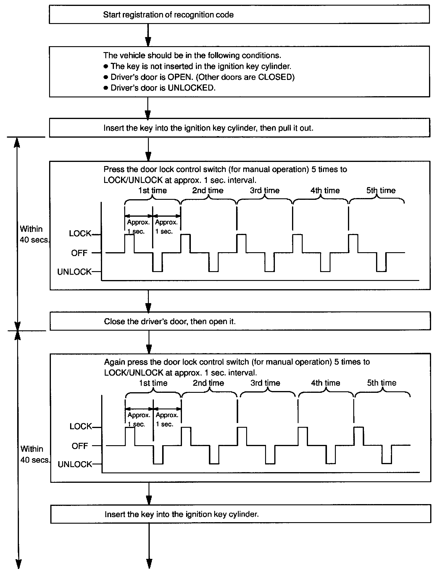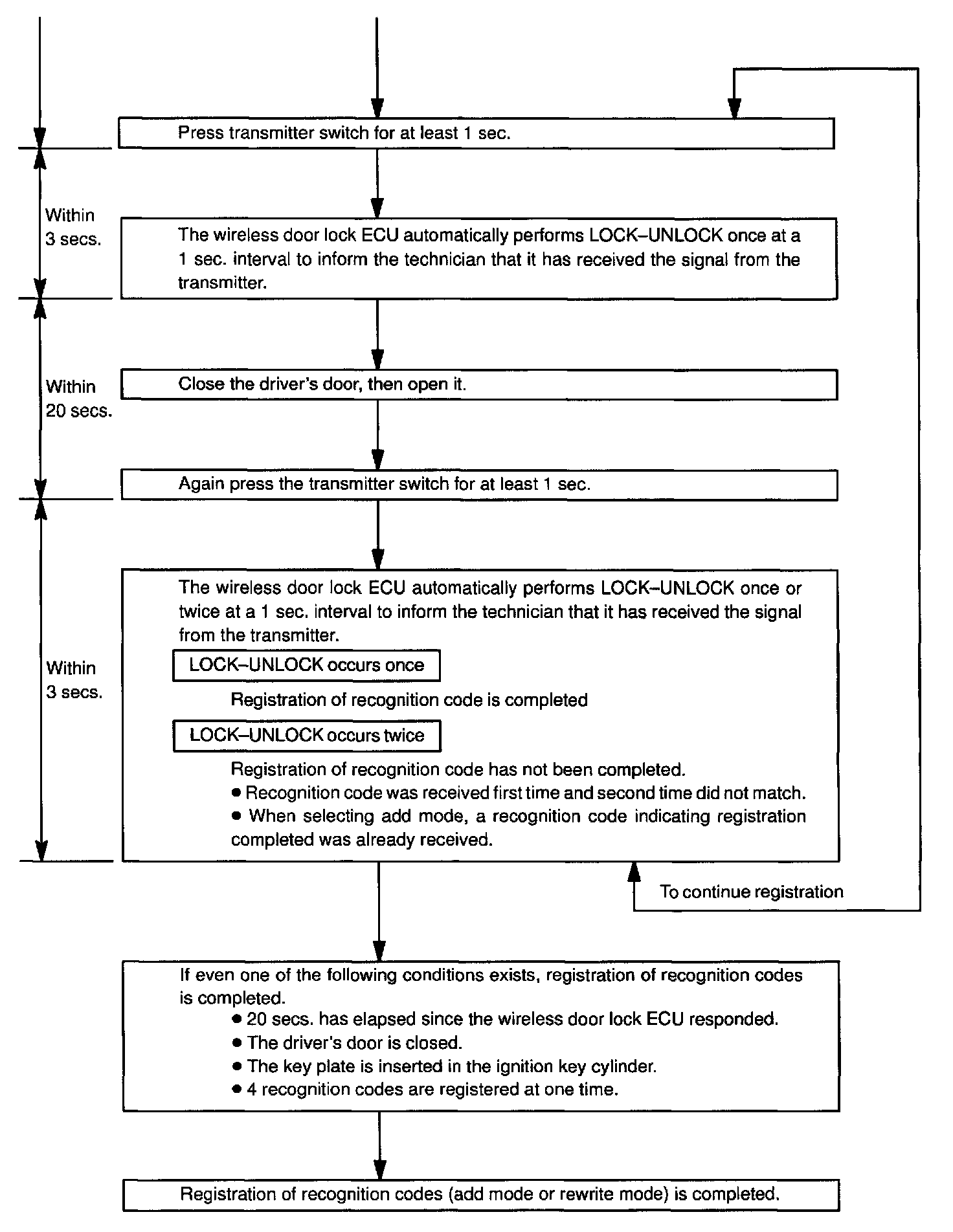 b. Follow the chart on the following to register the transmitter recognition code at the wireless door lock control receiver.