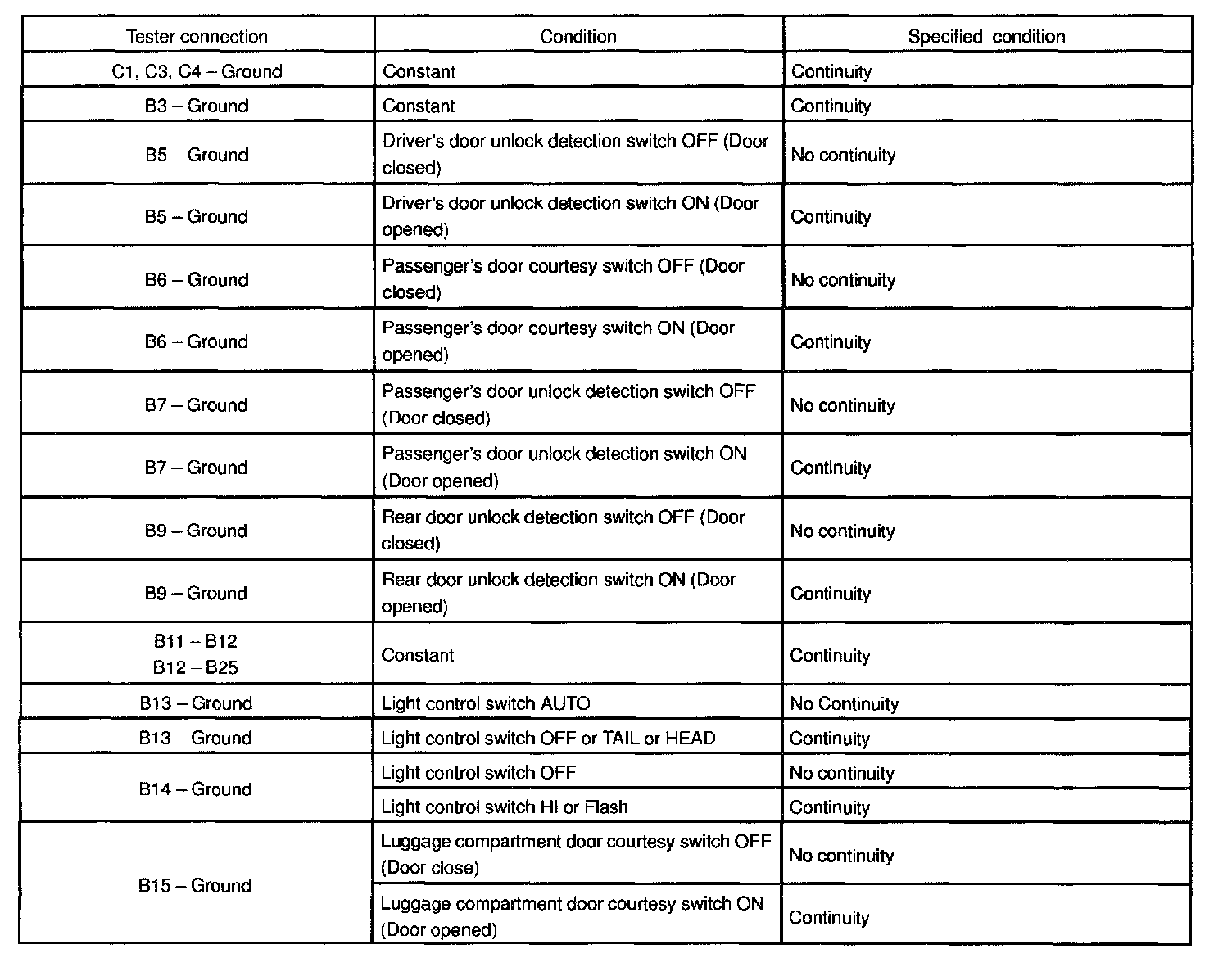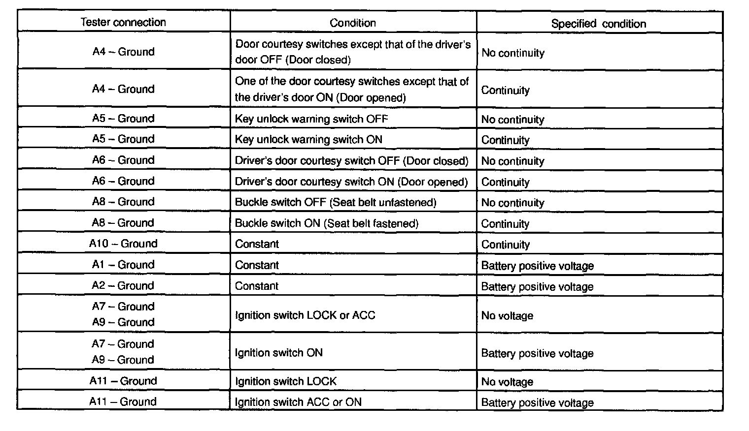 If the circuit is not as specified, inspect the circuits connected to other parts.