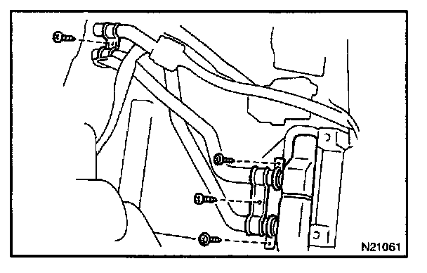c. Remove the 2 screws and 2 clips, then disconnect the heater radiator pipes from heater radiator.