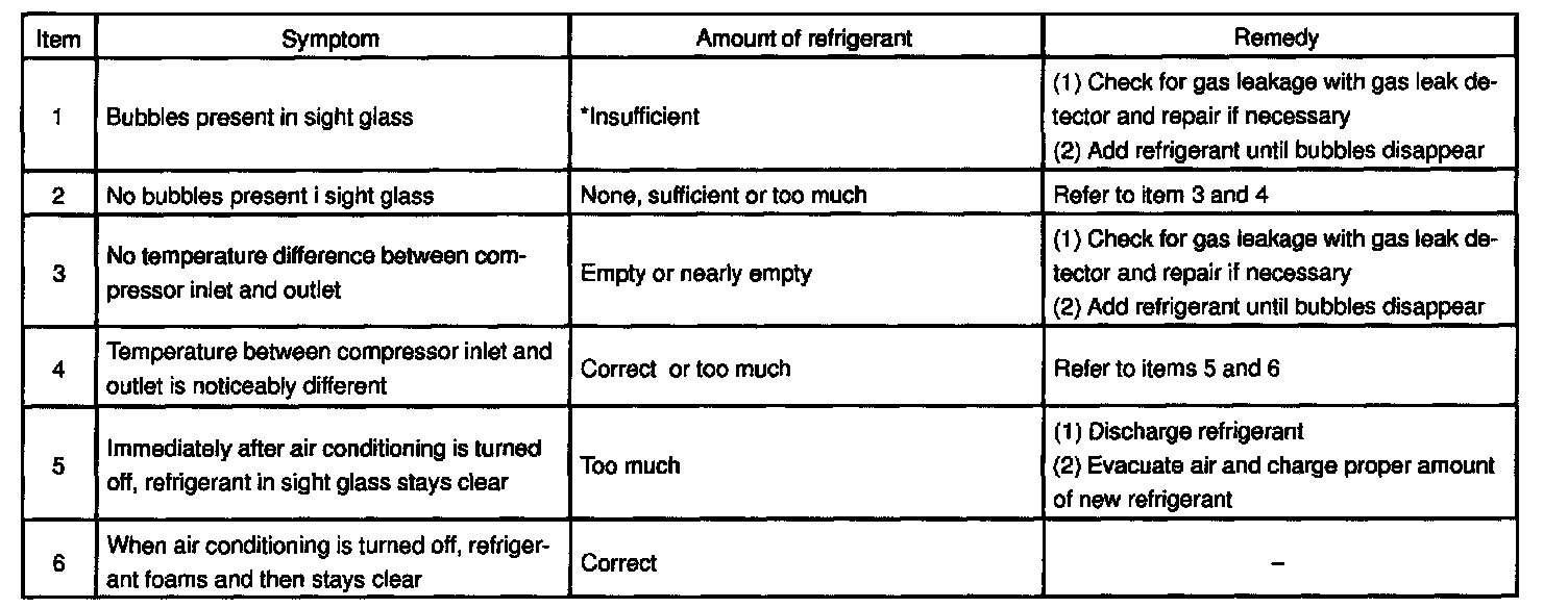*: Bubbles in the sight glass with ambient temperatures higher than usual can be considered normal if cooling is sufficient.