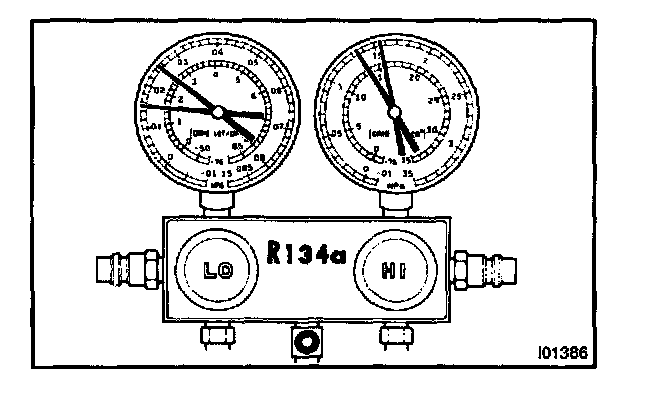 When compressor is OFF: Approx. 392 - 588 kPa (4 - 6 kgf/sq.cm, 57 -85 psi)