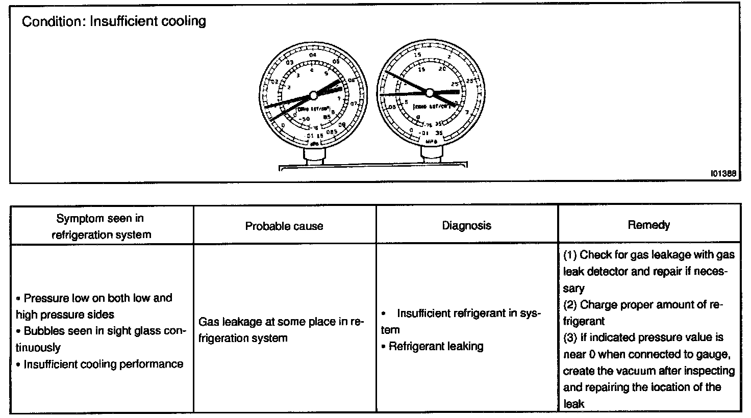 This is a method in witch the trouble is located by using a manifold gauge set. Read the manifold gauge pressure when the these conditions are established.