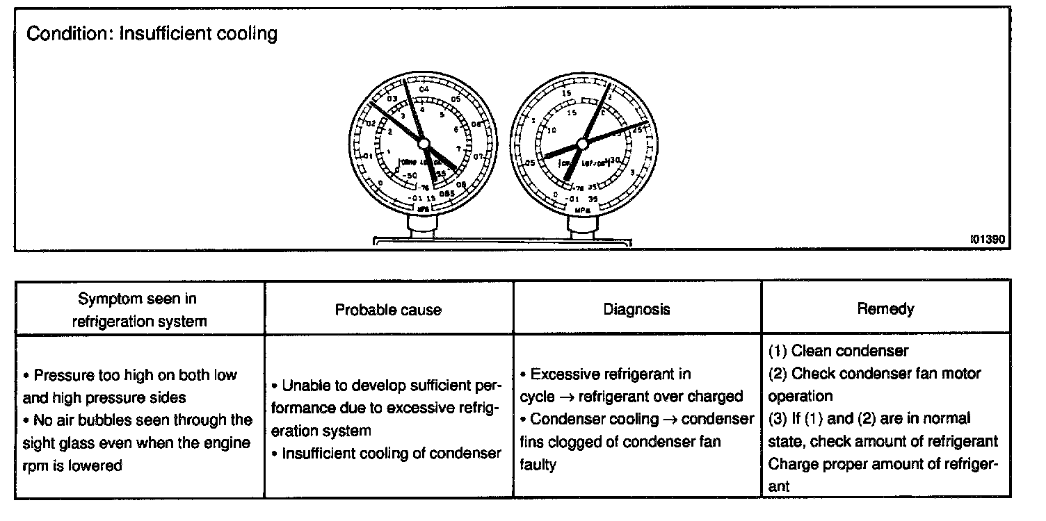 6. Refrigerant overcharged or insufficient cooling of condenser