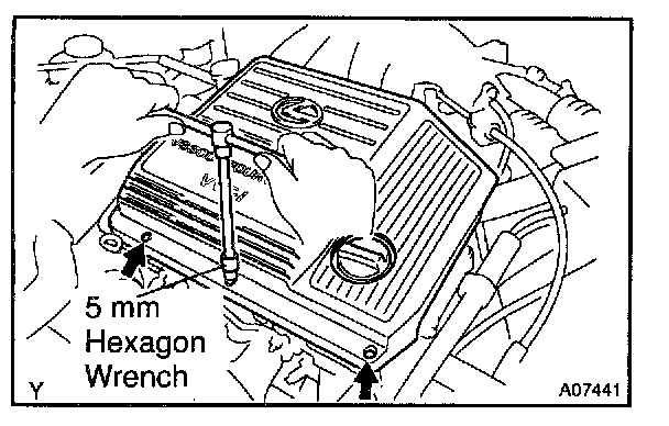 a. Using 5 mm hexagon wrench, install the V-bank cover with the 3 cap nuts.