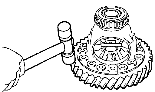 c. Using a plastic hammer, tap on the ring gear to remove it from the case.
