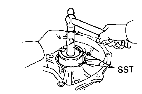 f. Using SST and a torque meter, measure the preload of the side bearing.