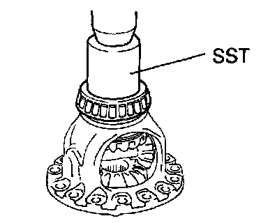 b. Using SST and a press, install the tapered roller bearing RH into the differential case.