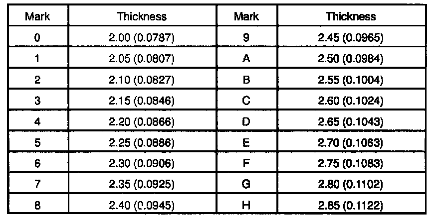b. Referring to the table, select thrust washers which will ensure that the backlash is within specification. Try to select washers of the same size for both side.