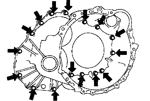 g. Using a plastic a hammer, remove the 17 bolts and transaxle housing.