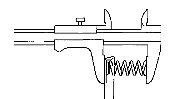 Using a vernier calipers, measure the free length of the spring together with the spring seat.