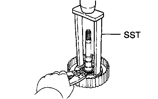 Using a screwdriver, remove the snap ring from the direct clutch.