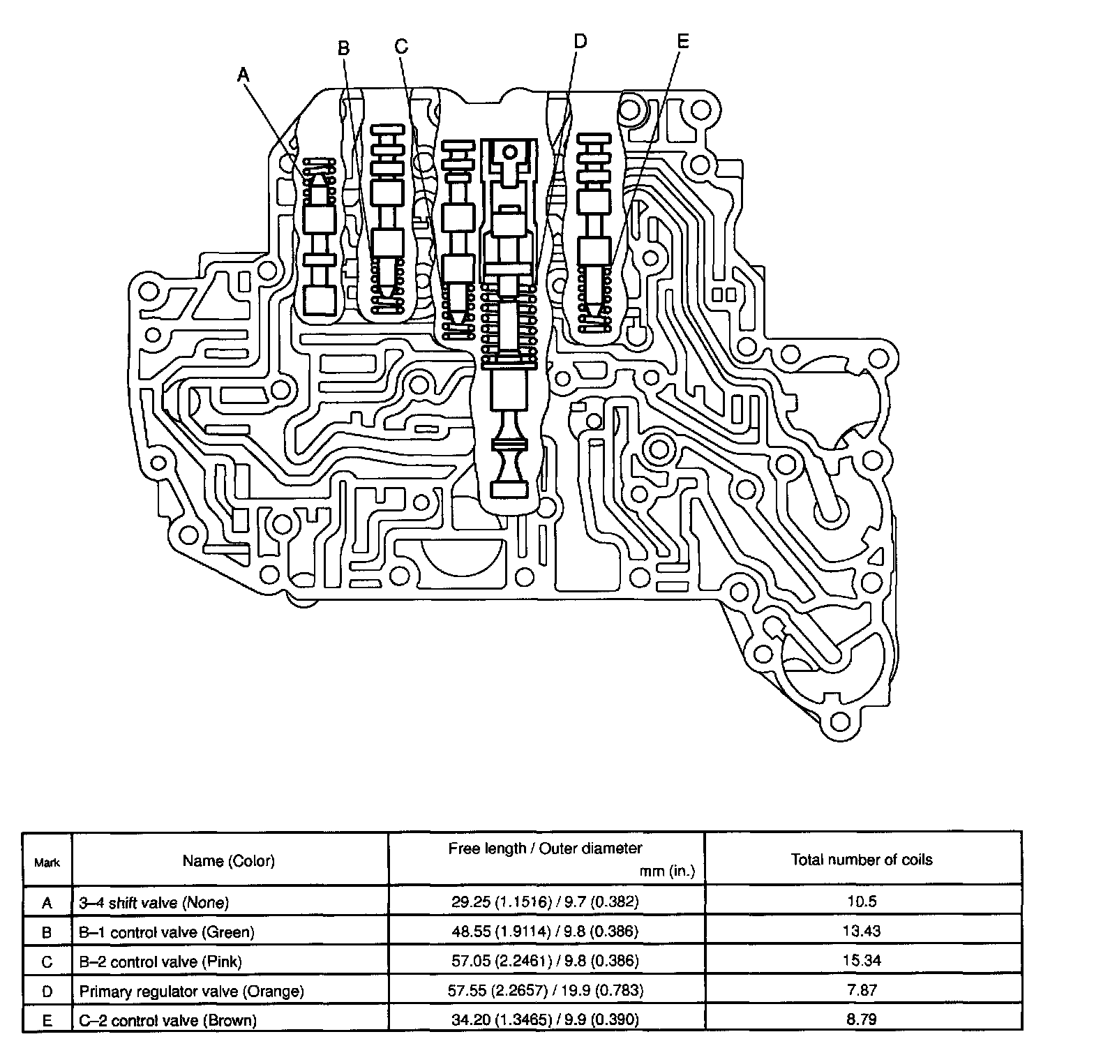 During re-assembly please refer to the spring specifications to help you to discriminate between the different springs: