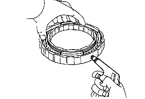 NOTICE: Be sure the end gap of the snap ring is not aligned with the piston return spring claw.