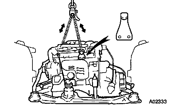 (b) Attach the engine chain hoist to the engine hangers.