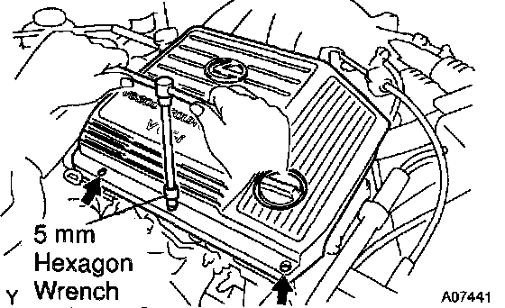 (a) Using a 5 mm hexagon wrench, remove the 3 cap nuts.