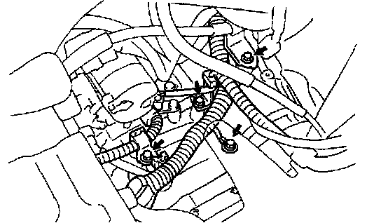 7. REMOVE 2 WIRE HARNESS MOUNTING BOLTS