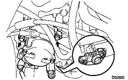 Remove the 2 bolts and disconnect the steering return pipe.