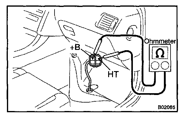 Using an ohmmeter, measure the resistance between the terminals +B and HT.
