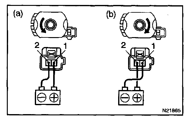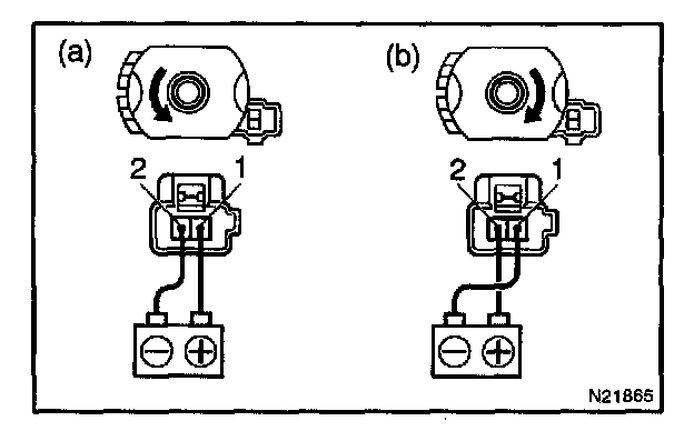 a. Connect the positive (+) lead from the battery to terminal 1 and the negative (-) lead to terminal 2, check that the motor turns counterclockwise.