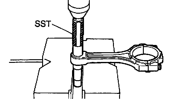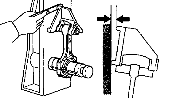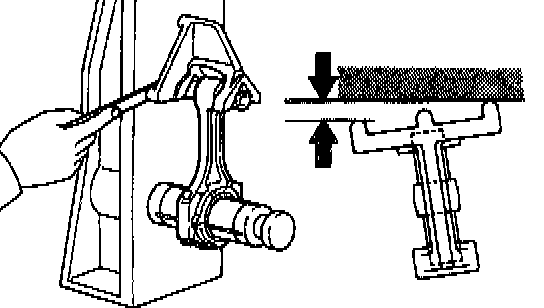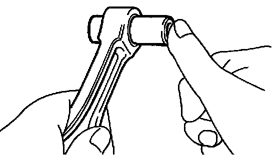 e. Check the piston pin fit at normal room temperature. Coat the piston pin with engine oil, and push it into the connecting rod with your thumb.