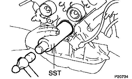 2. Using SST and a hammer, tap in a new oil seal until its surface is flush with the oil pump body edge.
