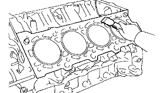 a. Using a gasket scraper, remove all the gasket material from the top surface of the cylinder block.