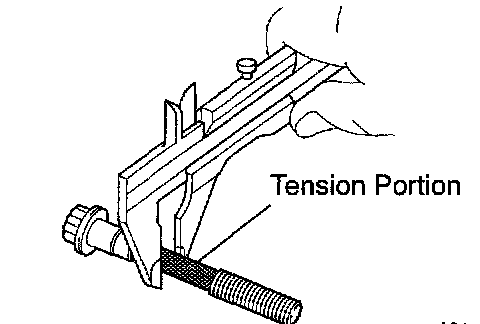 e. Using vernier calipers, measure the tension portion diameter of the main bearing cap bolt.