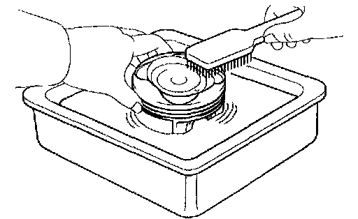 b. Using a soft brush and solvent, thoroughly clean the cylinder block.