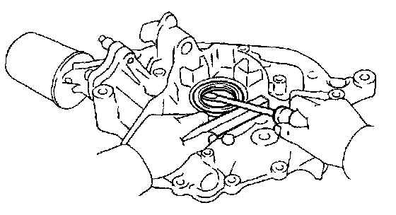 1. Using a screwdriver and hammer, tap out the oil seal.