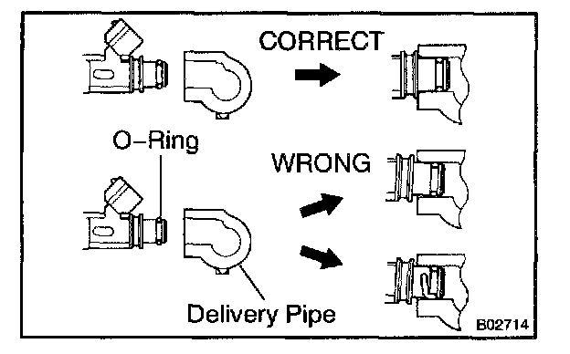 Before installing the injector, must apply spindle oil or gasoline on the place where a delivery pipe or an intake manifold touches an O-ring of the injector.