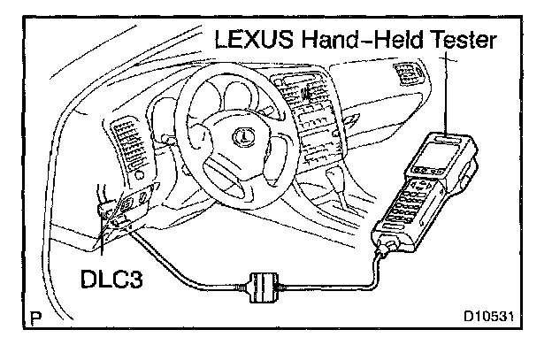 1. Connect the LEXUS hand-held tester or OBD II scan tool to the DLC3.