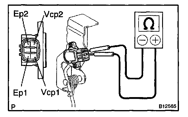 If the resistance is not as specified, replace the accelerator pedal assembly with accelerator pedal position sensor.