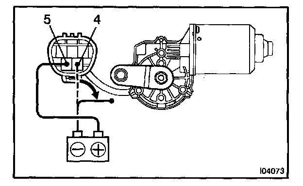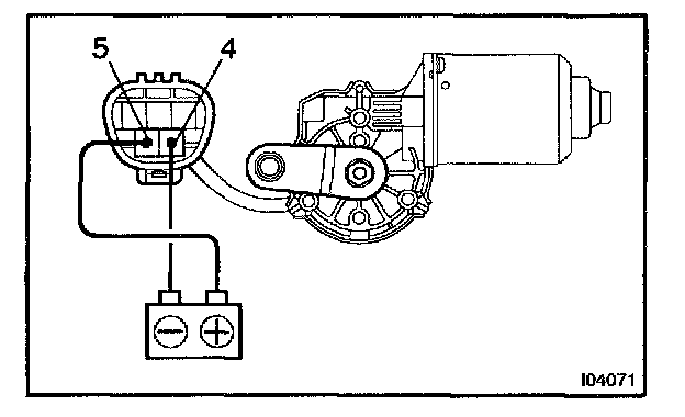 Connect the positive (+) lead from the battery to terminal 5 and the negative (-) lead to terminal 4, check that the motor operates at low speed.