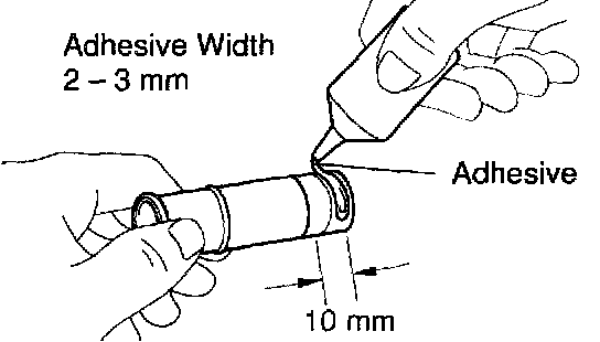 a. Apply adhesive to the end of the heater union as shown in the illustration.