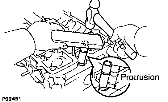 b. Using a wooden block and hammer, tap in a new heater union, leaving 48 mm (1.89 inch) protruding from the cylinder head.