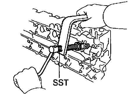 f. Using SST, compress the valve spring and place the 2 keepers around the valve stem.