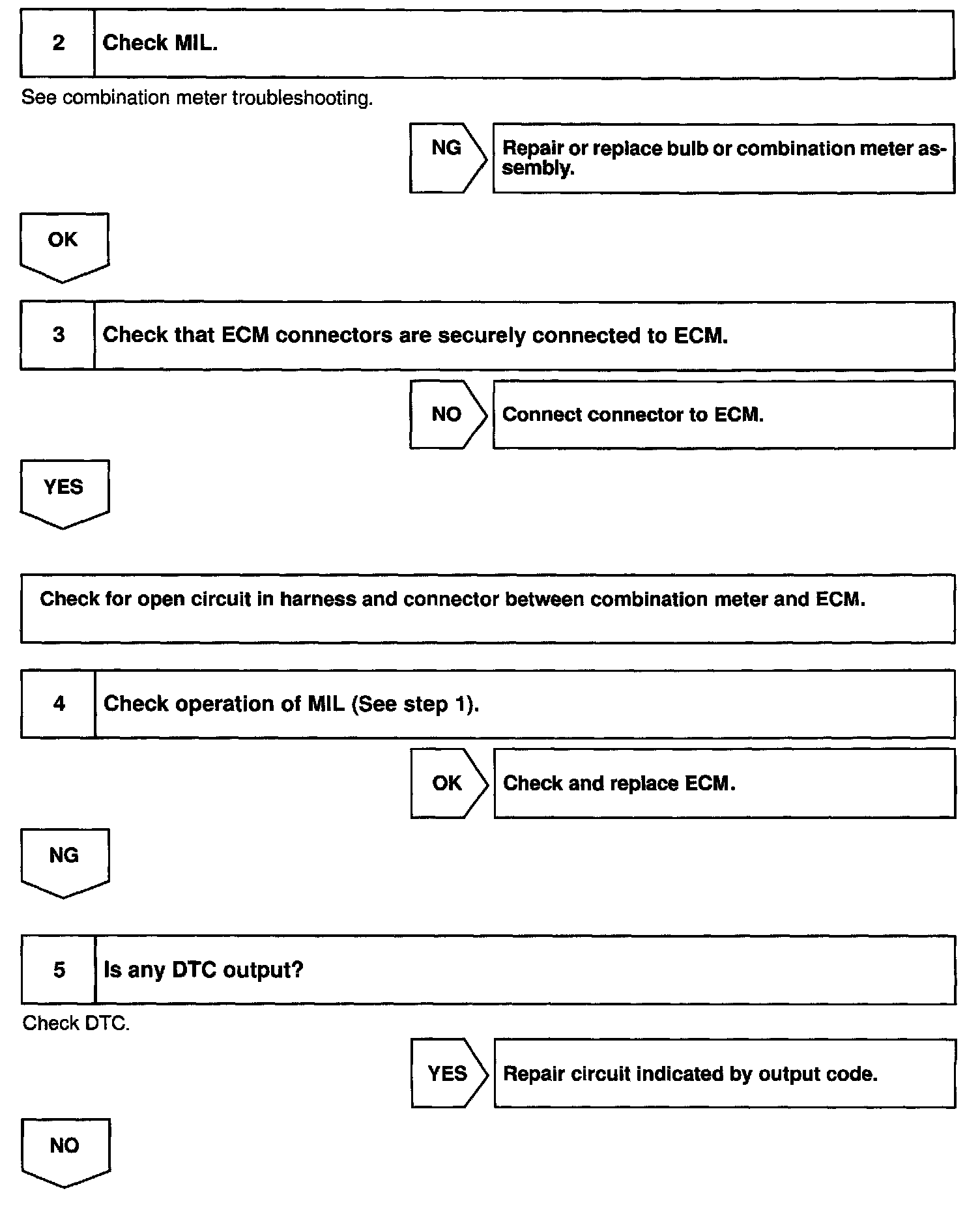 CIRCUIT DESCRIPTIONif the ECM detects trouble, the MIL lights up. At this time, the ECM records a DTC in memory.