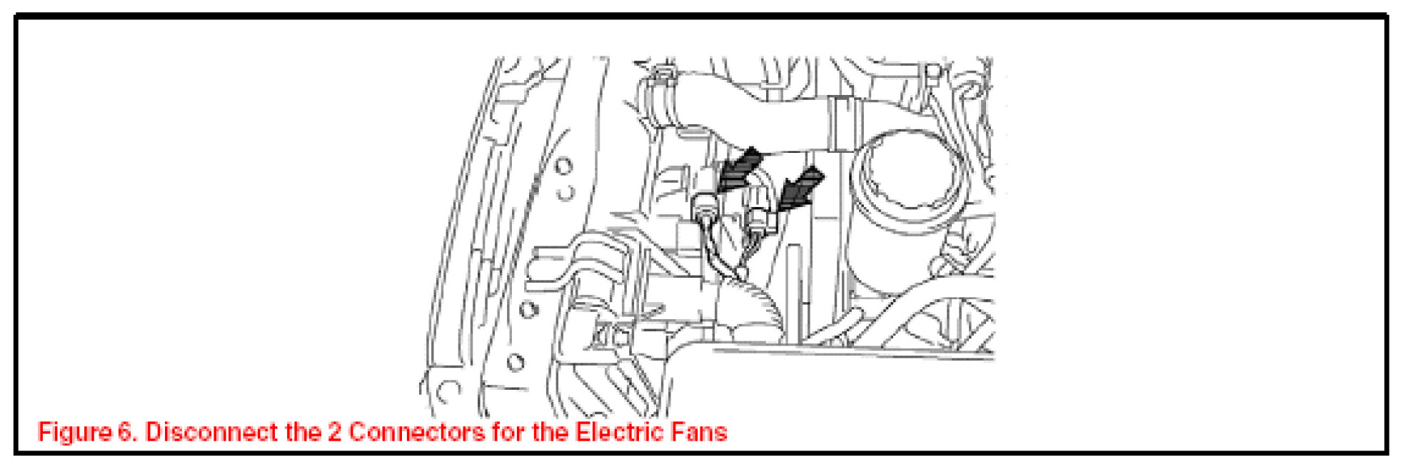 1. Disconnect the 2 connectors for the electric fans (See Figure 6).