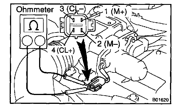 b. Using an ohmmeter, measure the resistance between terminal 3 (CL-) and 4 (CL+).