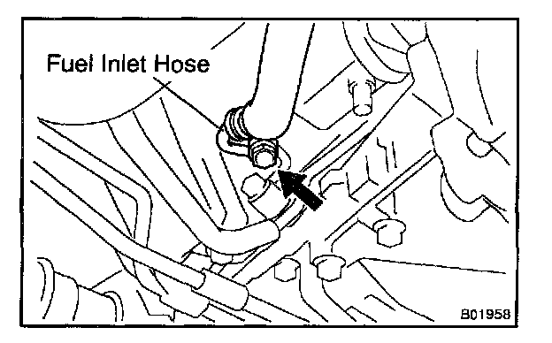c. Remove the union bolt and 2 gaskets, and disconnect the fuel inlet hose from the fuel pipe support.